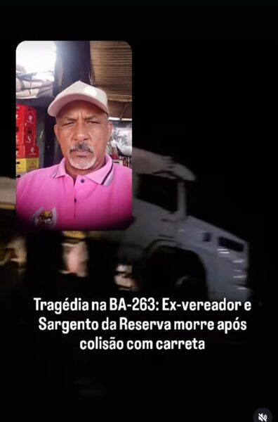 Tragédia na BA-263: Ex-vereador e Sargento da Reserva morre após colisão com carreta um grave acidente automobilistico registrado na noite deste domingo (8) na rodovia BA-263, próximo à região do Rio da Onça entre Itapetinga e Itororó, resultou na morte do sargento da reserva da Políicia Militar e ex-vereador, identificado como Sargento Alberto.